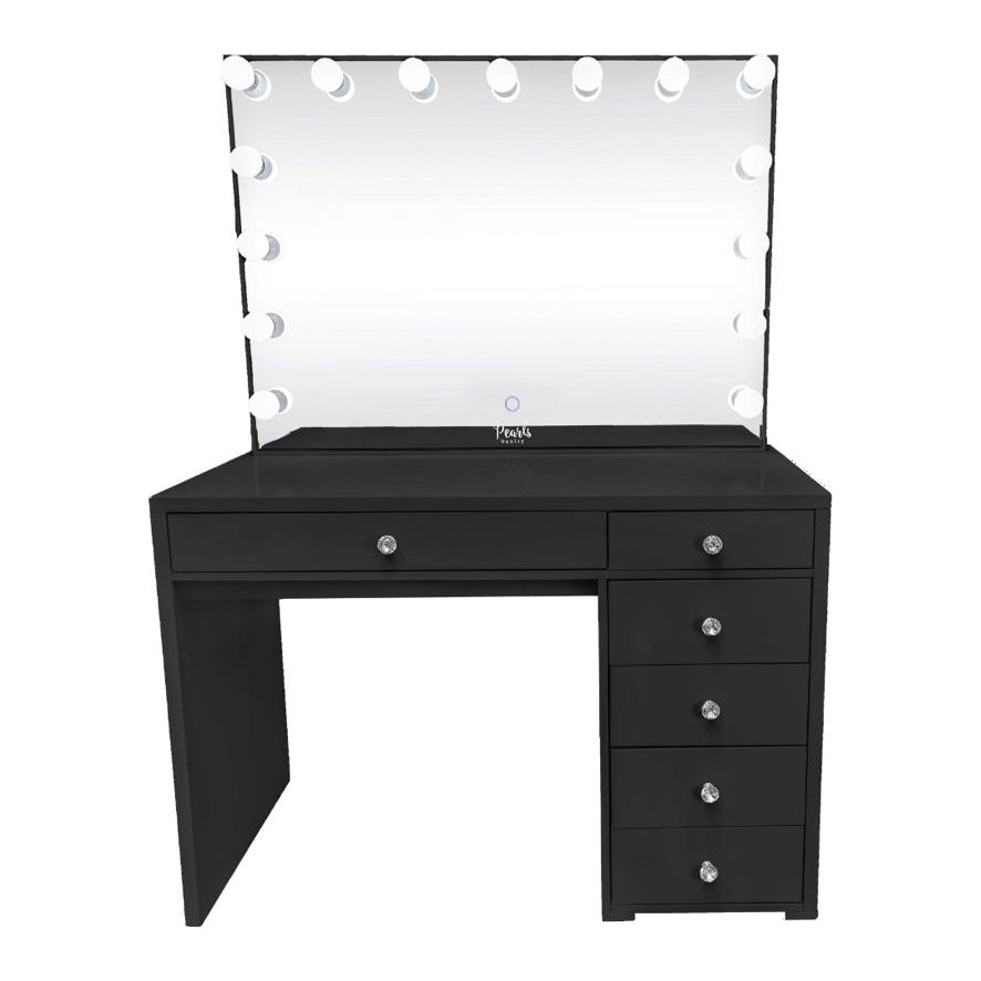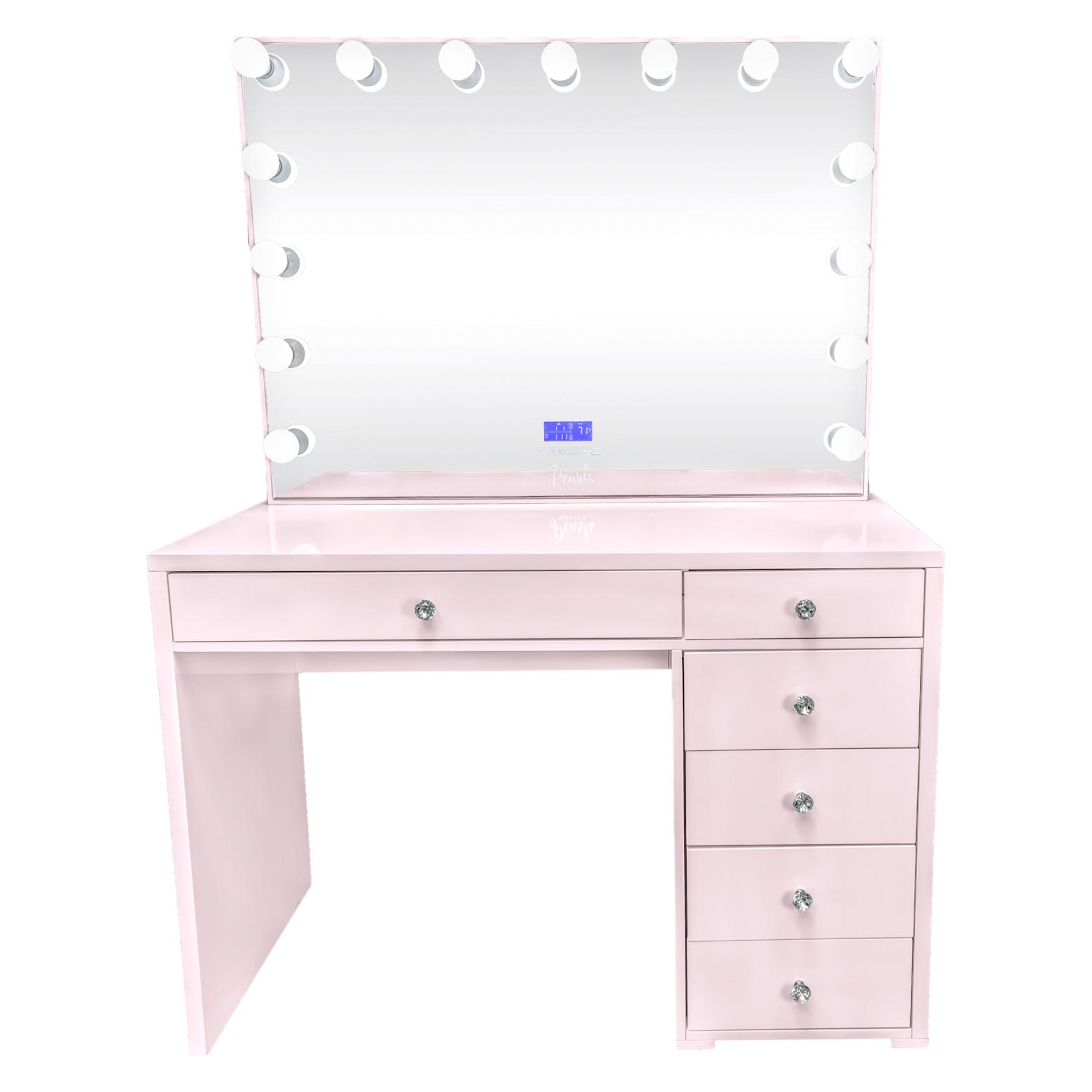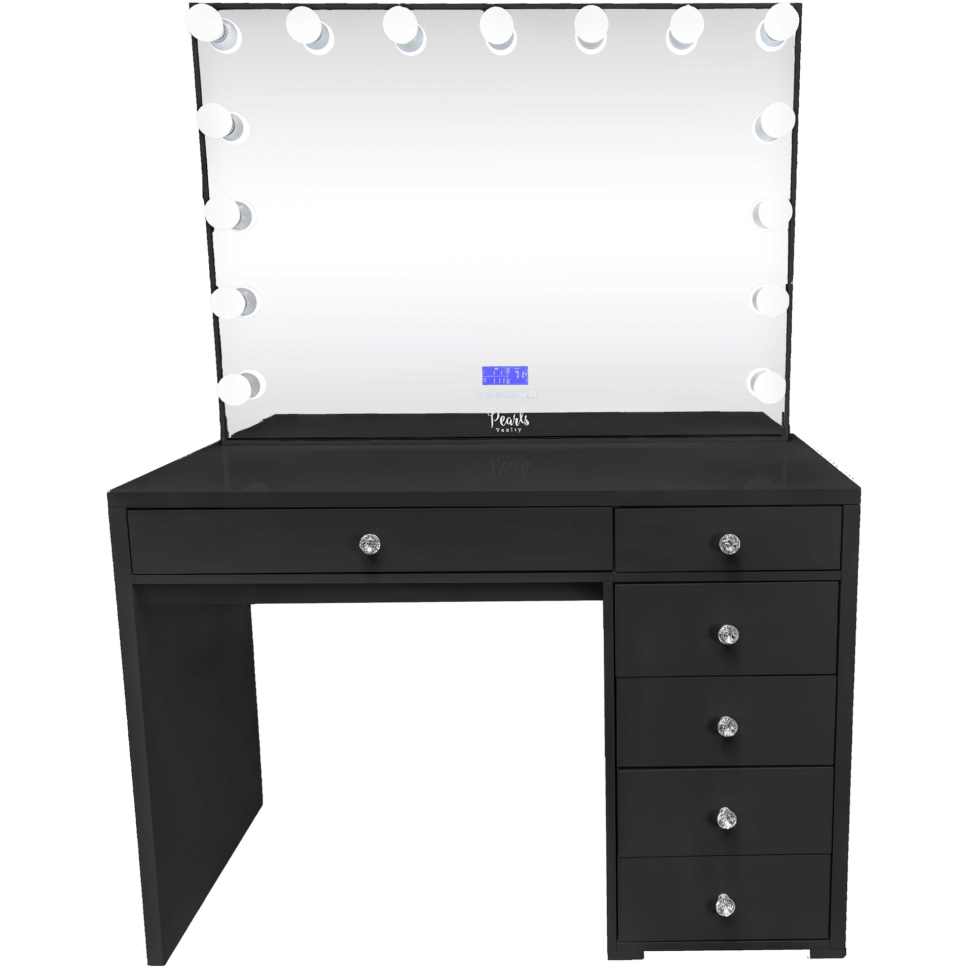 Experience a vanity made for both elegance and endurance. With a smooth, high-gloss finish & crystal knobs. Equipped with Bluetooth features and dimmable bulbs for lasting brilliance.