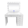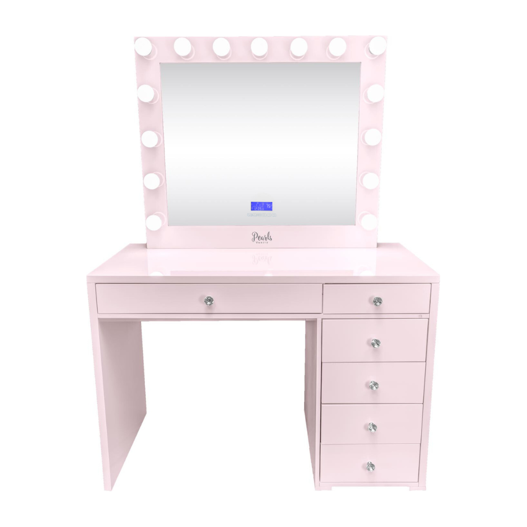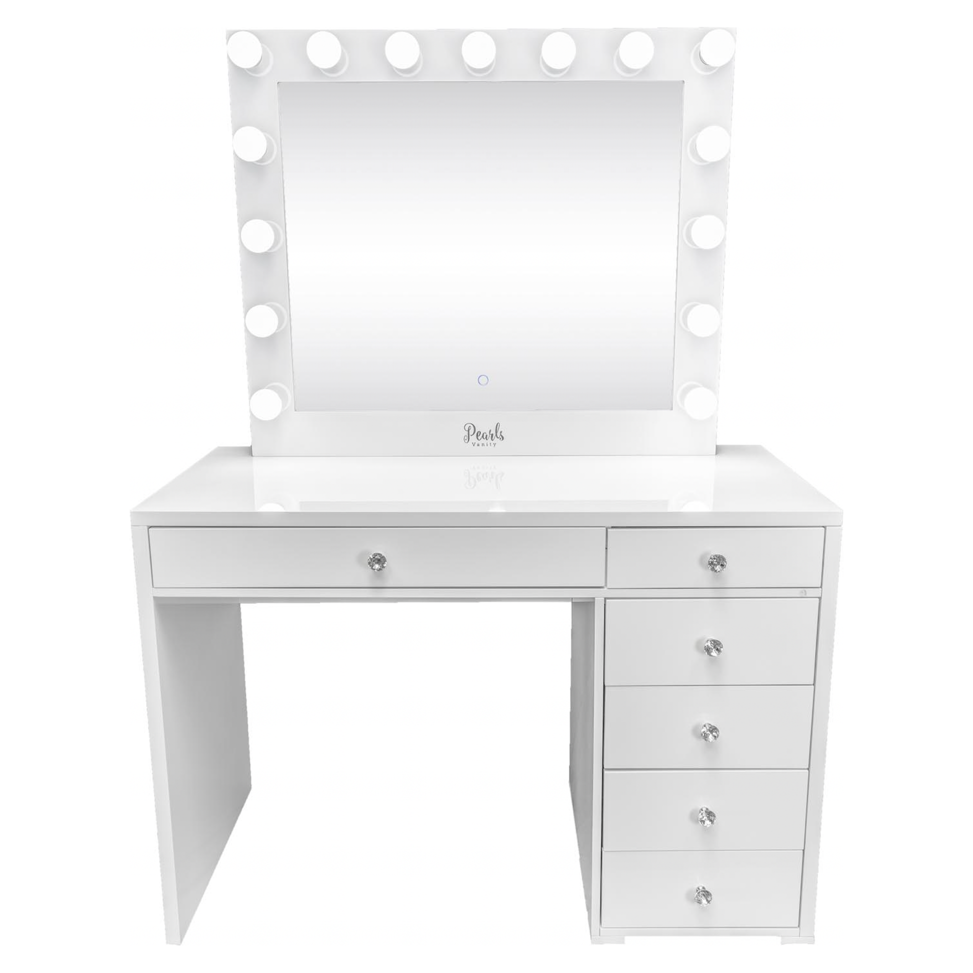 Experience a vanity made for both elegance and endurance. With a smooth, high-gloss finish & crystal knobs. Equipped with Bluetooth features and dimmable bulbs for lasting brilliance.