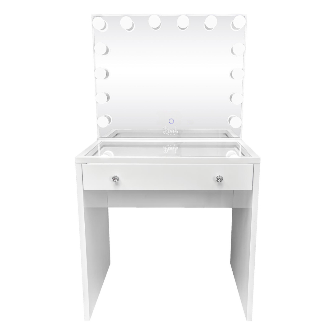 Experience a vanity made for both elegance and endurance. With a smooth, high-gloss finish & crystal knobs. Equipped with Bluetooth features and dimmable bulbs for lasting brilliance.