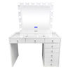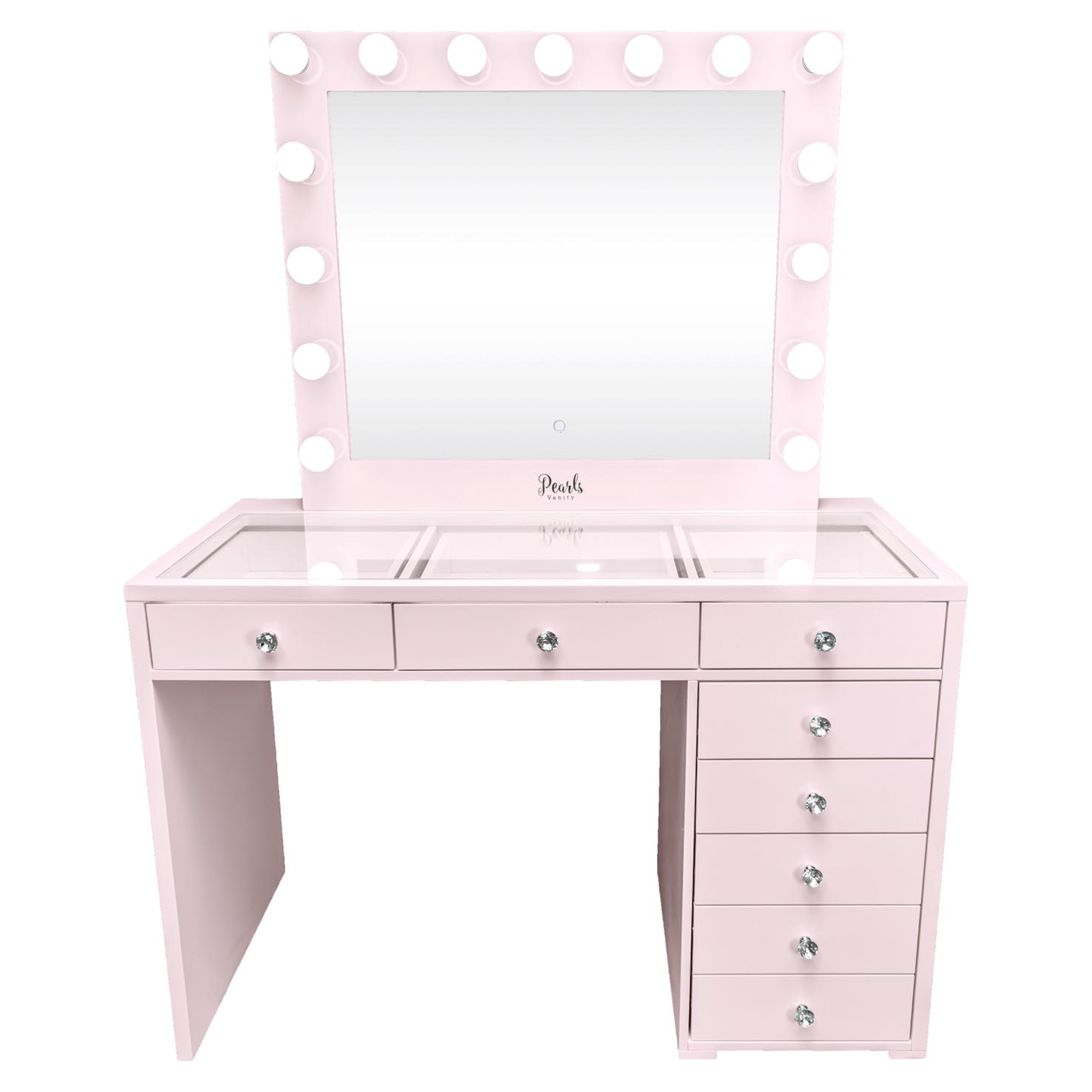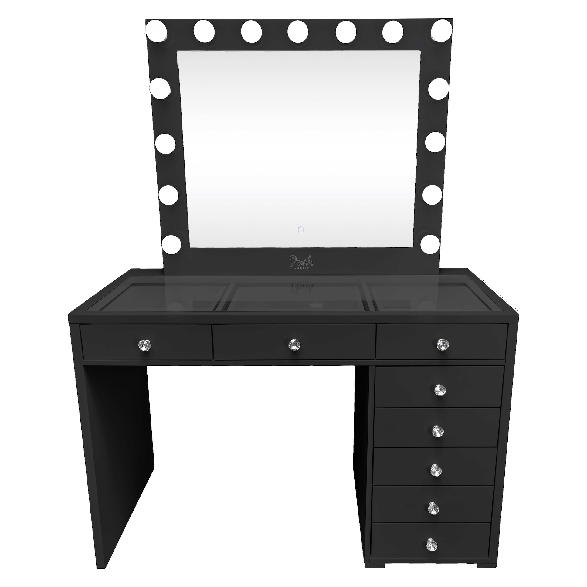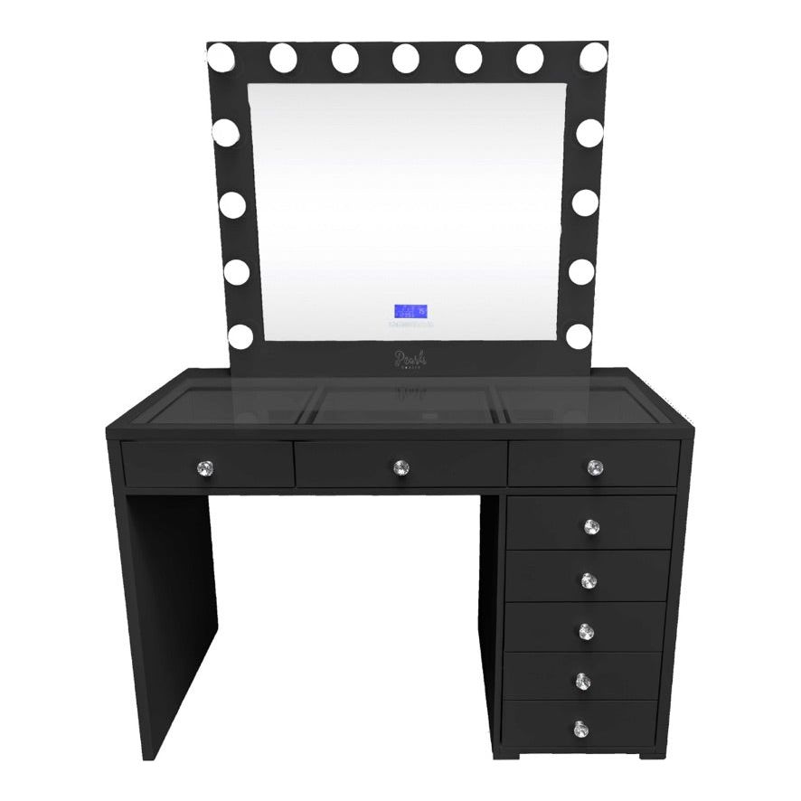 Experience a vanity made for both elegance and endurance. With a smooth, high-gloss finish & crystal knobs. Equipped with Bluetooth features and dimmable bulbs for lasting brilliance.