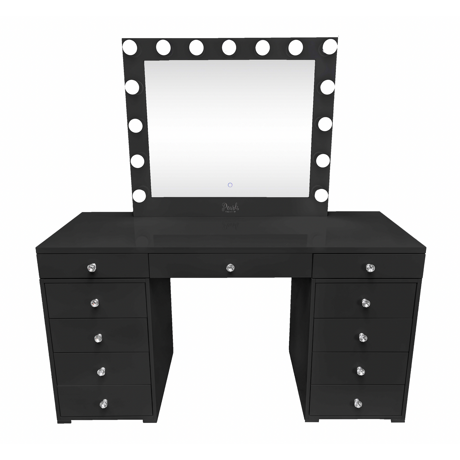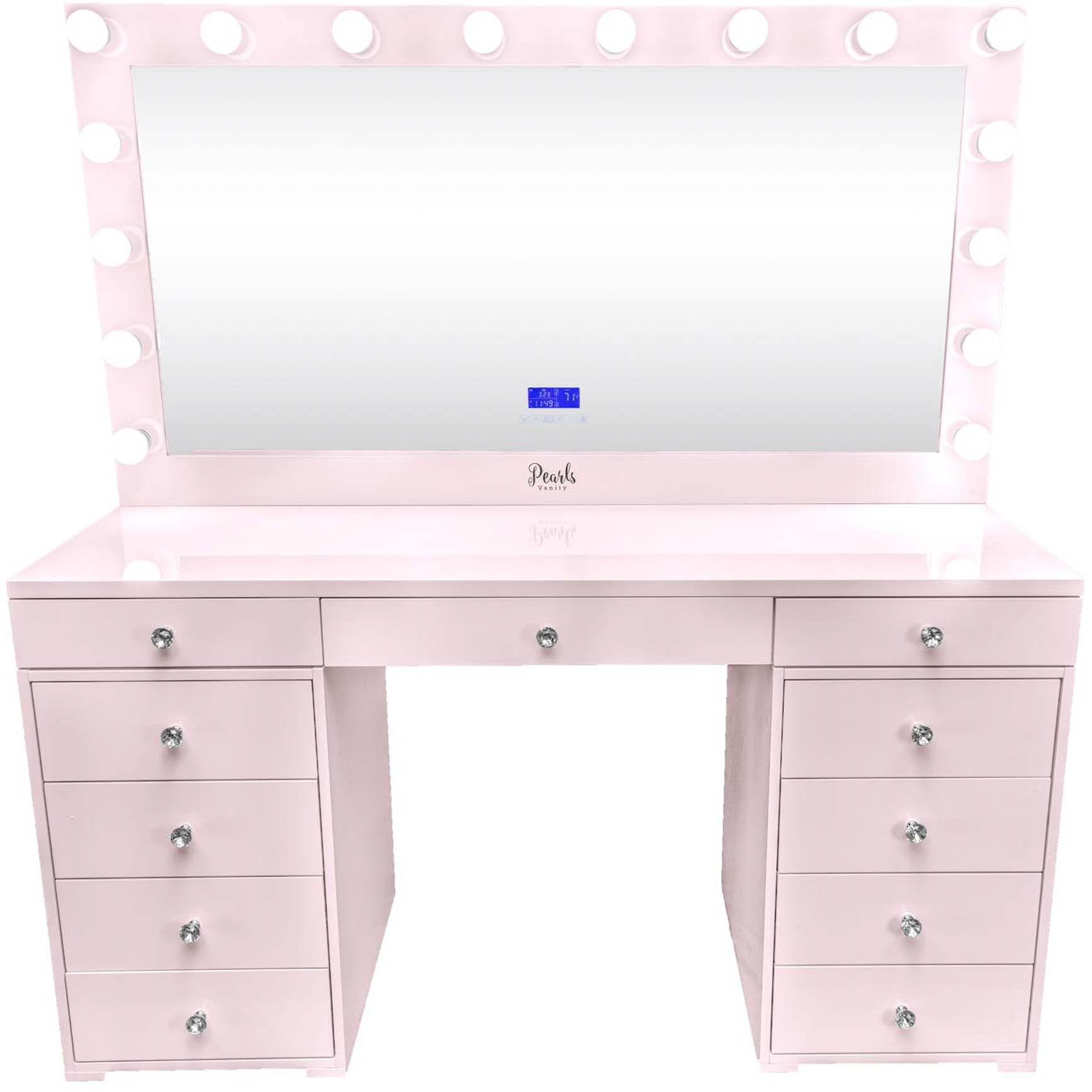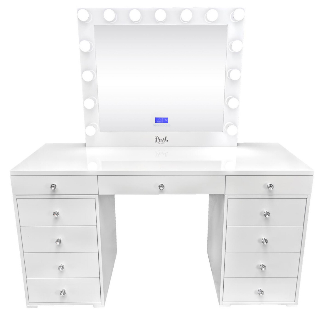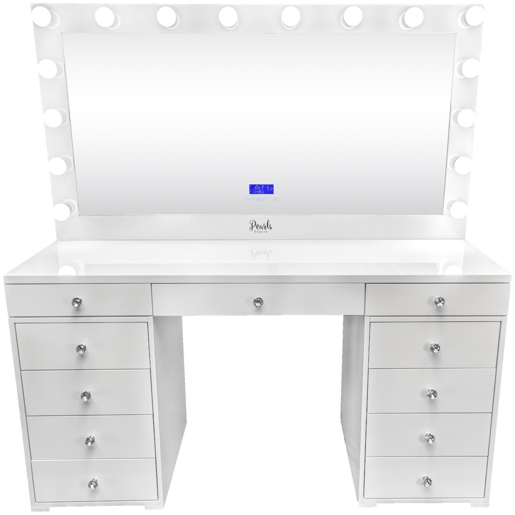 Experience a vanity made for both elegance and endurance. With a smooth, high-gloss finish & crystal knobs. Equipped with Bluetooth features and dimmable bulbs for lasting brilliance.