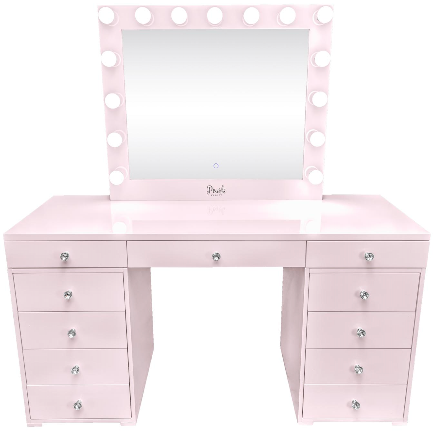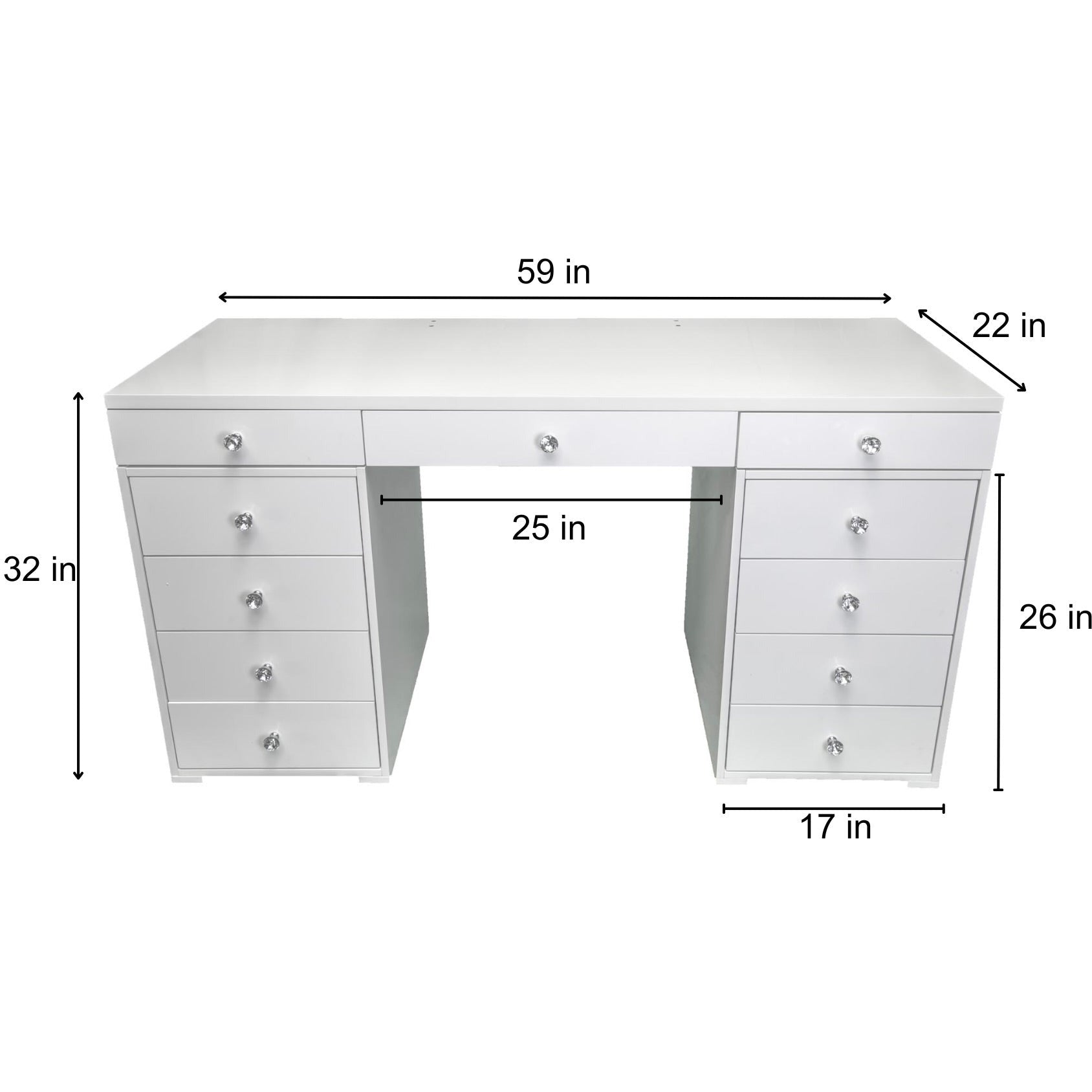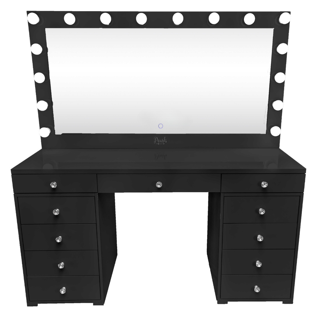 Experience a vanity made for both elegance and endurance. With a smooth, high-gloss finish & crystal knobs. Equipped with Bluetooth features and dimmable bulbs for lasting brilliance.
