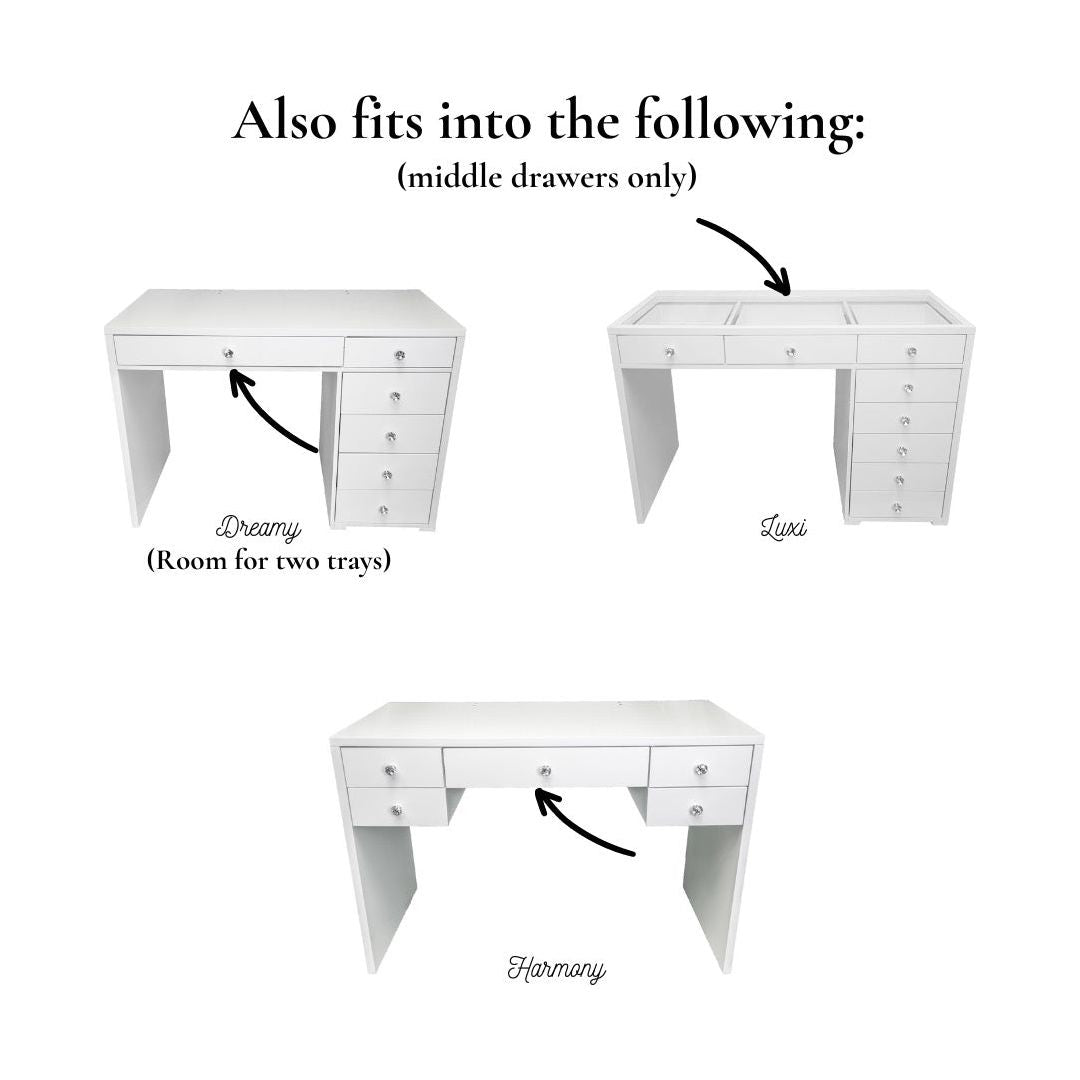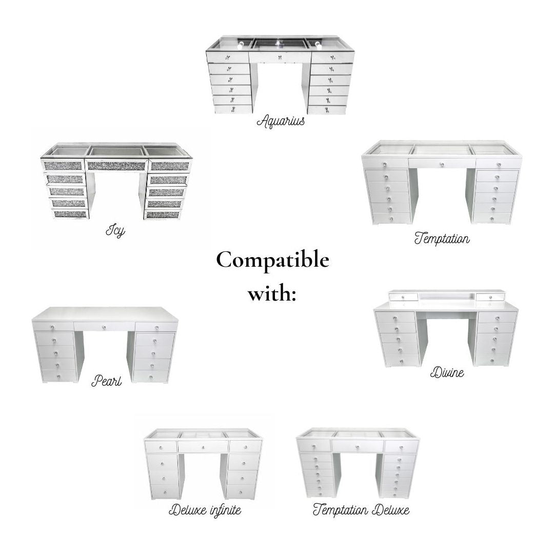 Experience a vanity made for both elegance and endurance. With a smooth, high-gloss finish & crystal knobs. Equipped with Bluetooth features and dimmable bulbs for lasting brilliance.