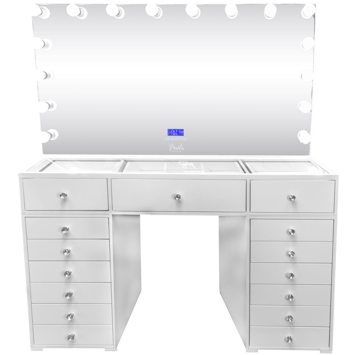 Icy - Mirrored/ Bejewled Glass top Press-Open Vanity & Frameless Mirror