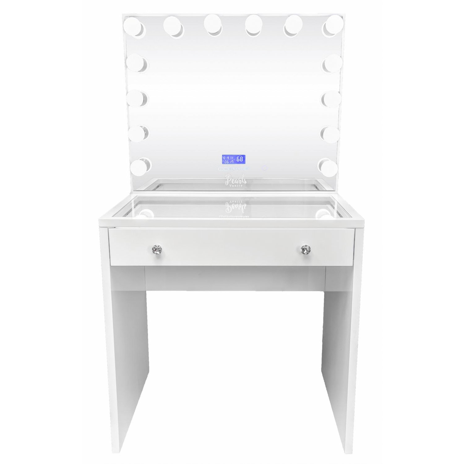 Infinite - 59" Double Drawers Glass Top Vanity (Deep Drawers) & Frameless Mirror