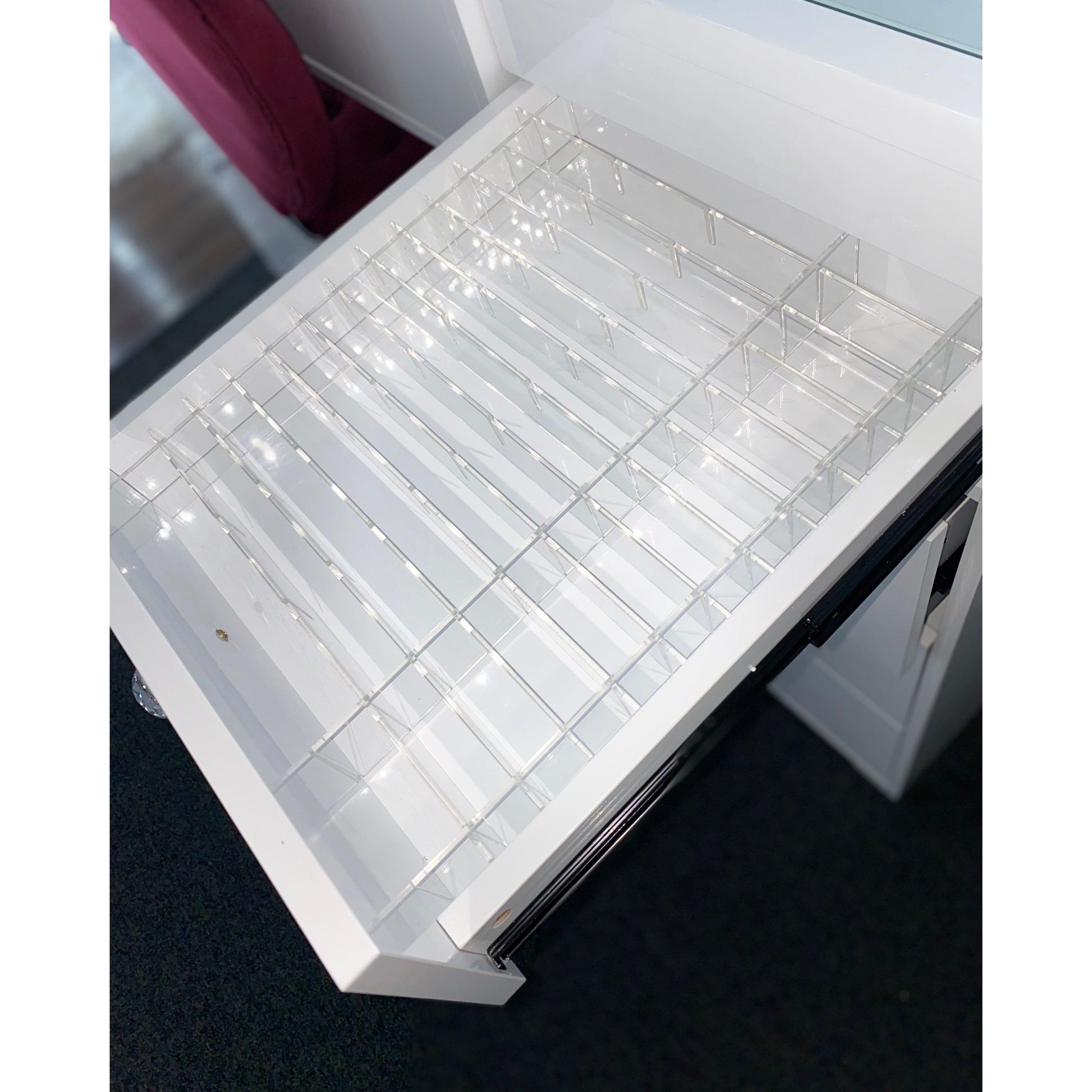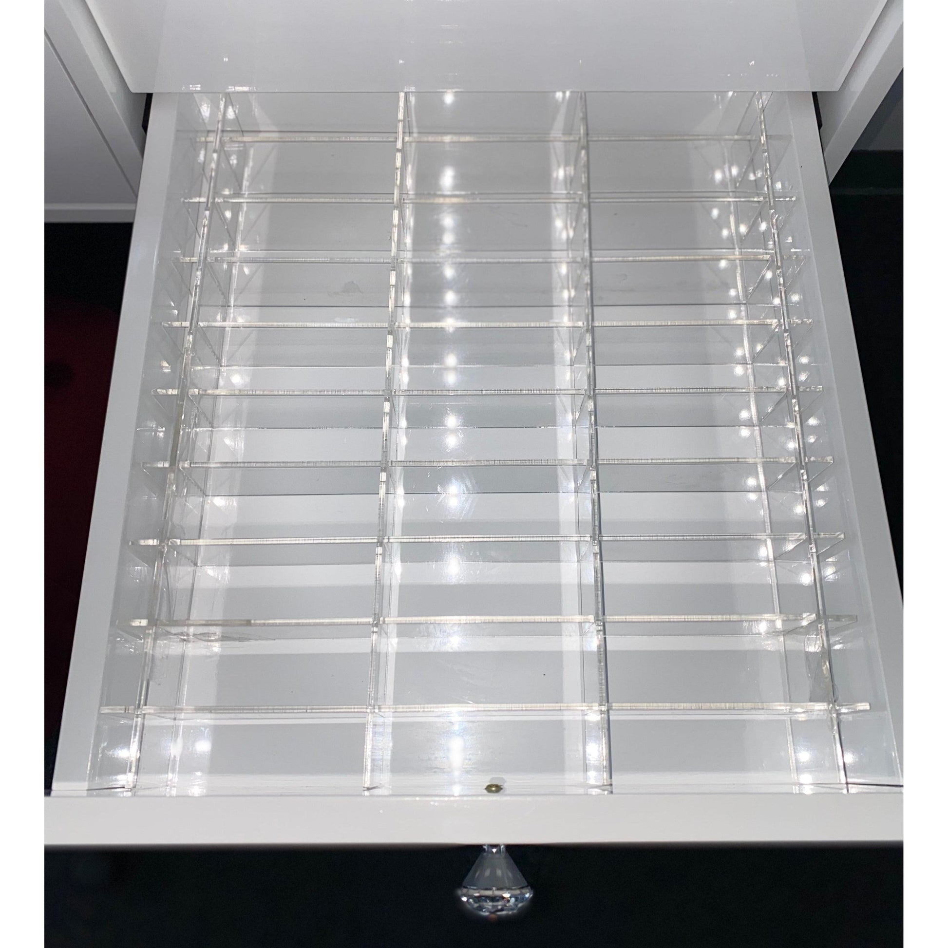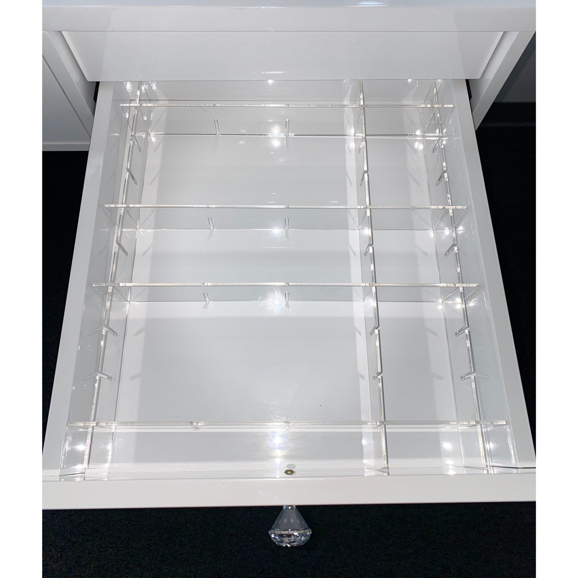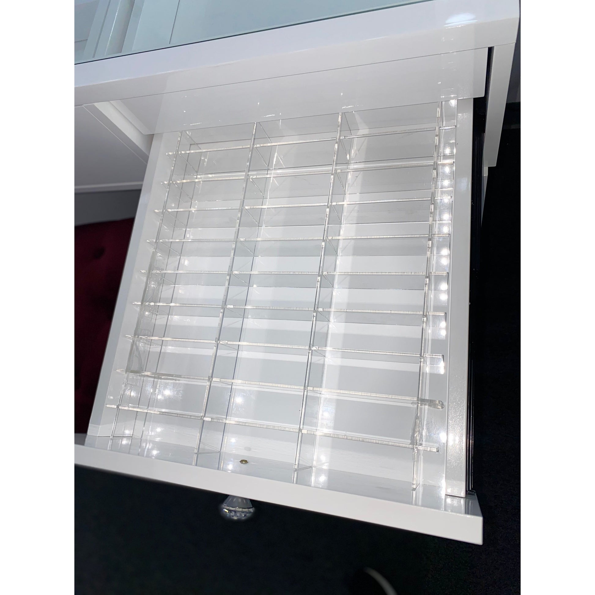 Experience a vanity made for both elegance and endurance. With a smooth, high-gloss finish & crystal knobs. Equipped with Bluetooth features and dimmable bulbs for lasting brilliance.