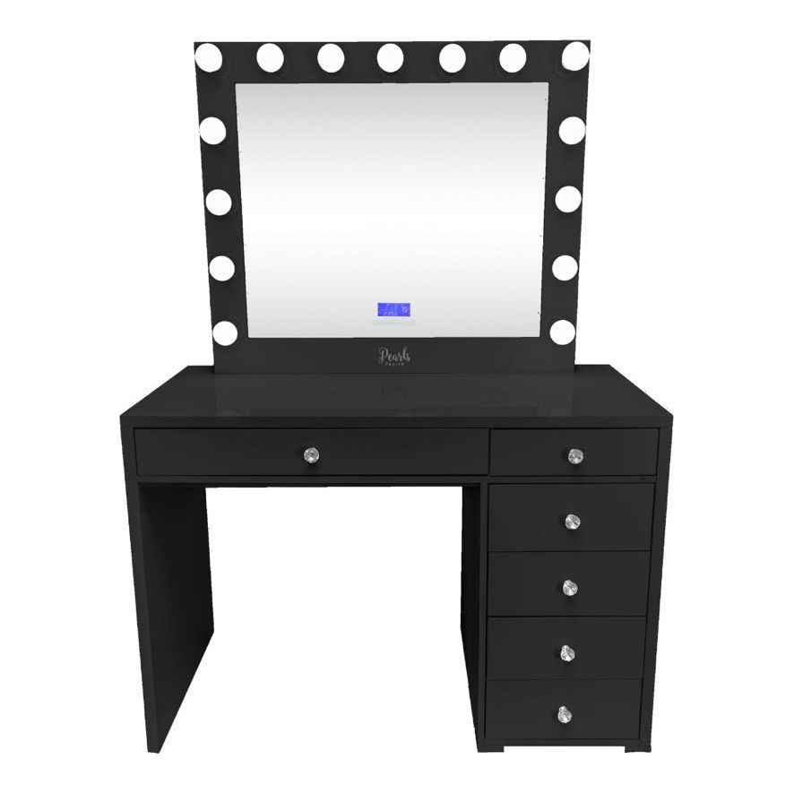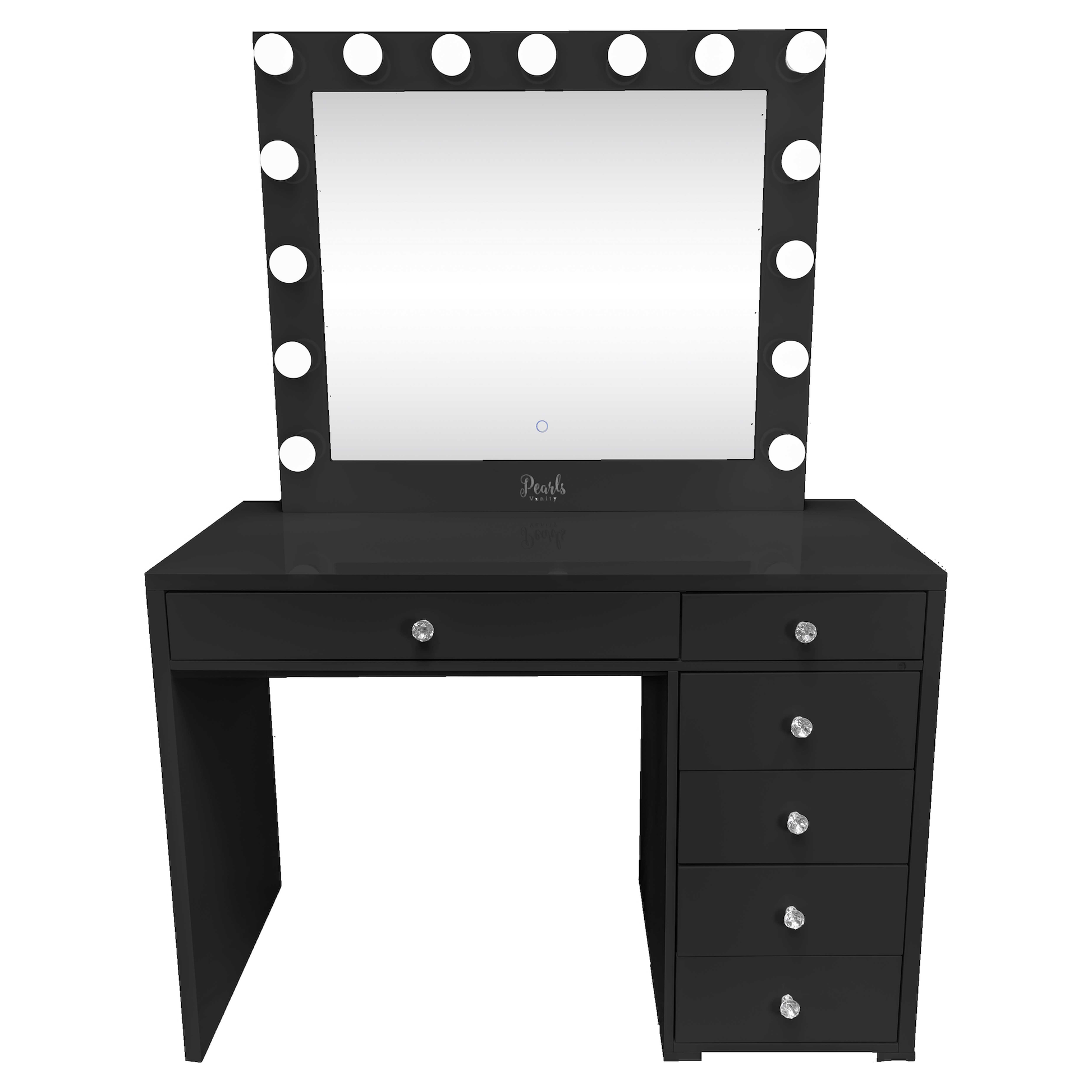 Experience a vanity made for both elegance and endurance. With a smooth, high-gloss finish & crystal knobs. Equipped with Bluetooth features and dimmable bulbs for lasting brilliance.