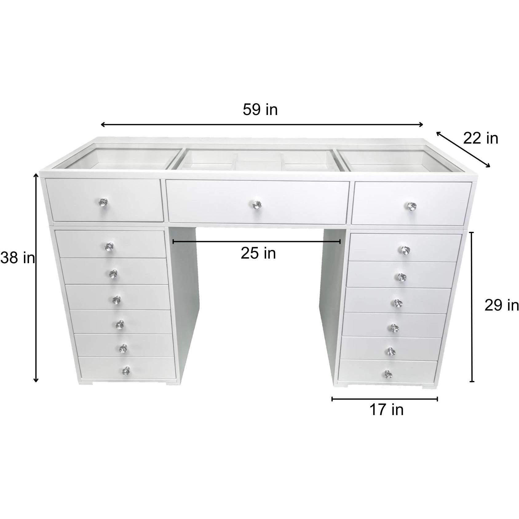 Deluxe - 59" Double Drawers Glass Top Vanity & Frameless Mirror