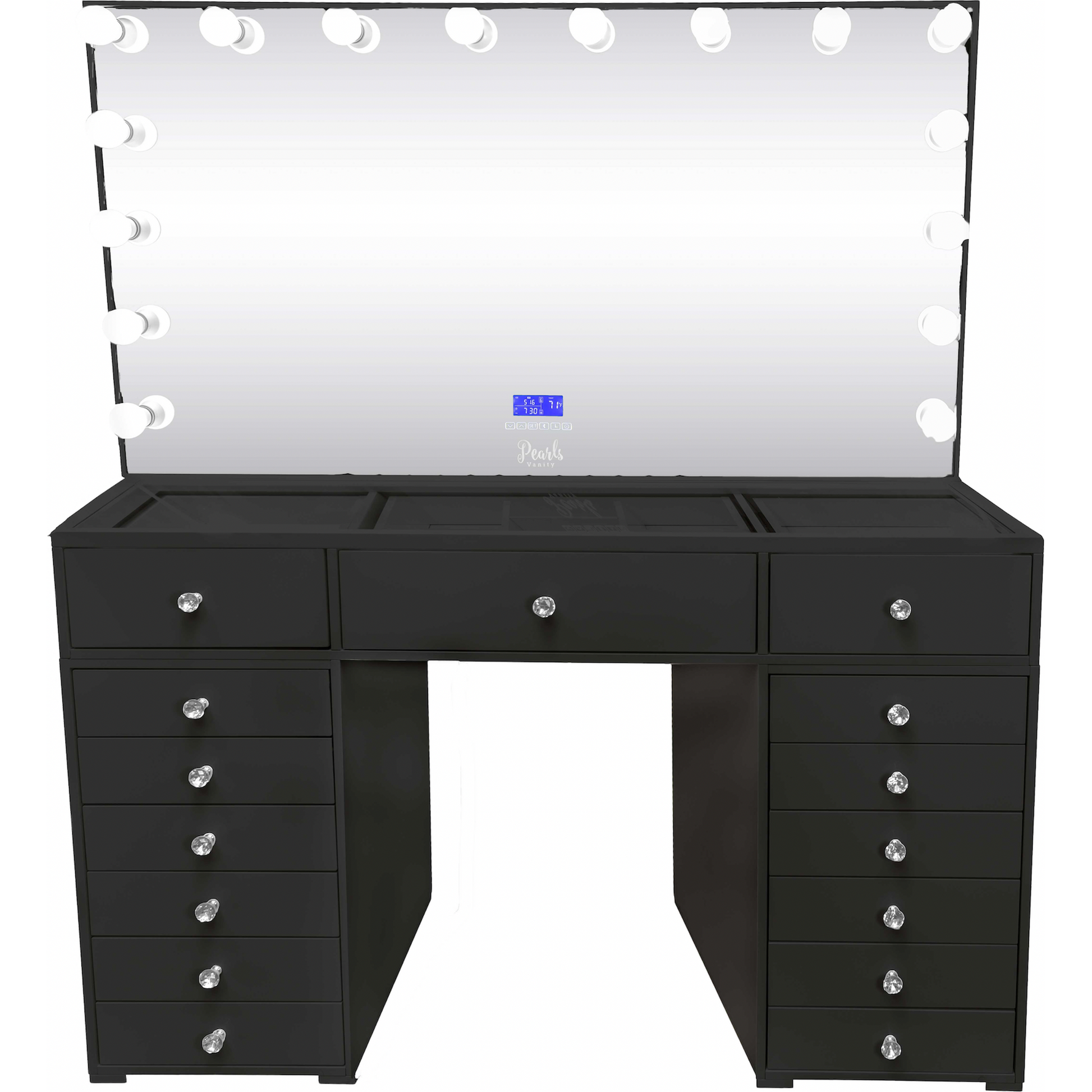 Get the illumination you deserve for each and every make up look with our High Quality and innovative Pearls Vanity Mirrors. Mirror includes LED, cool light and 100% replaceable screw-in light bulbs (we don’t do stick on bulbs around here 🙅‍♀️) two outlets, two USB outlets and the option to adjust the brightness directly from your mirror with our innovational touch dimming sensor, located in the lower center of your mirror. In addition to all of those features the Bluetooth mirrors include two impressively loud built in speakers located in each side of your mirror, and a bluetooth screen.  Bluetooth screen allows you to switch from next or previous playing song, adjusting brightness, volume control, and it keeps you up to date displaying the time, date and temperature. You can have a blast playing your favorite songs while getting ready to slay all day!