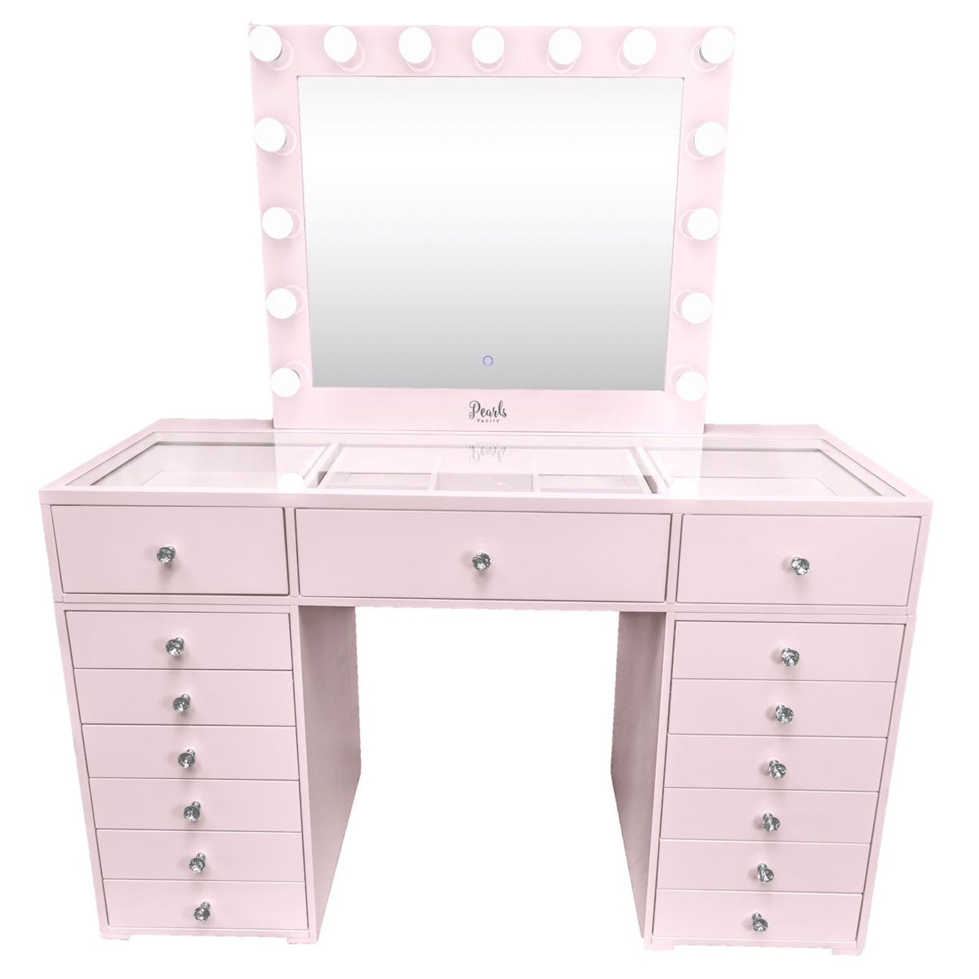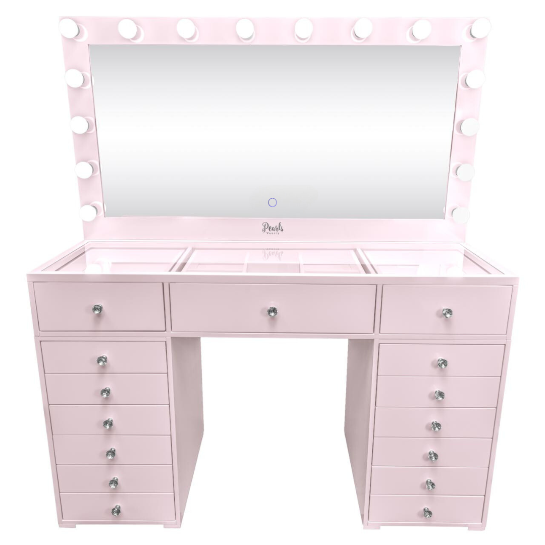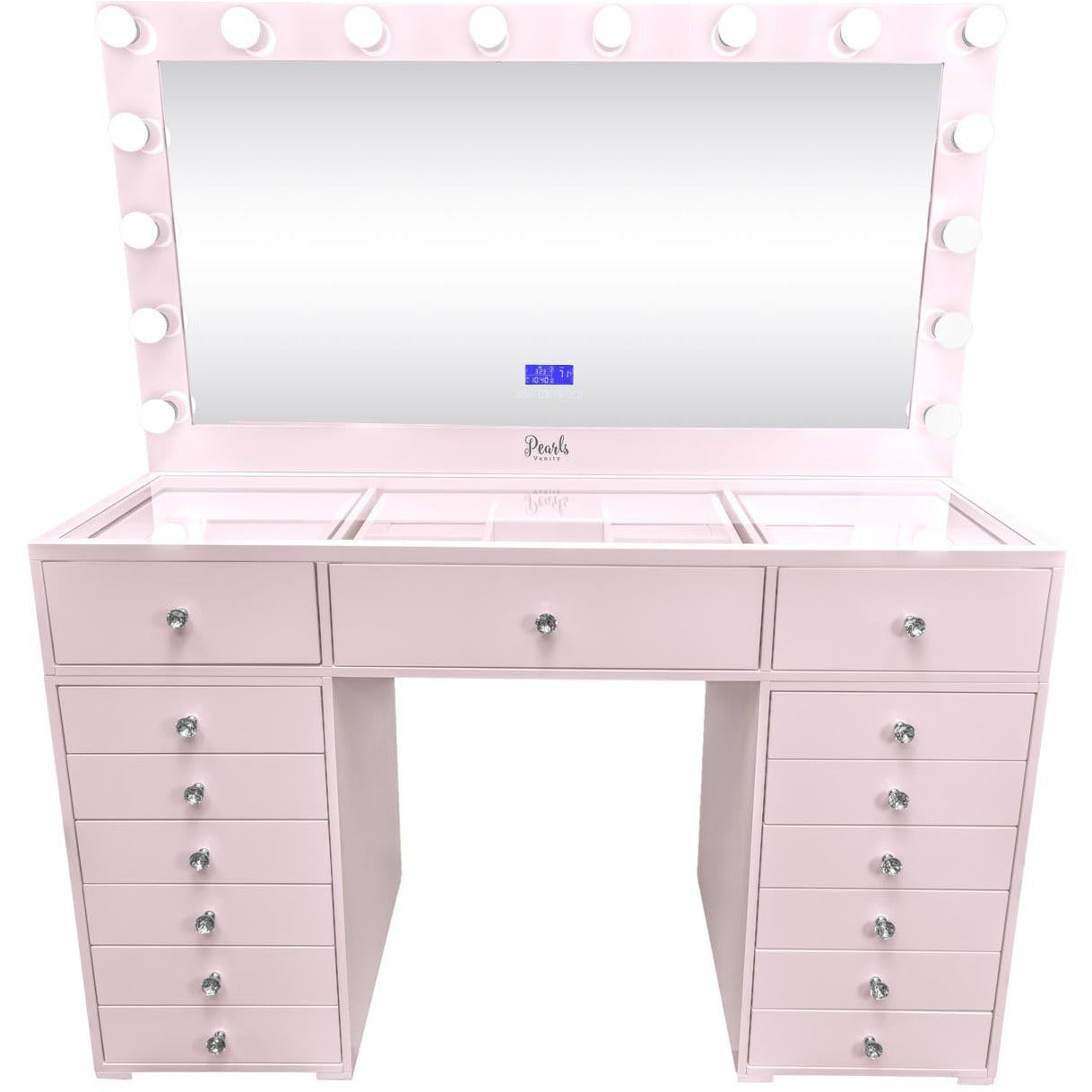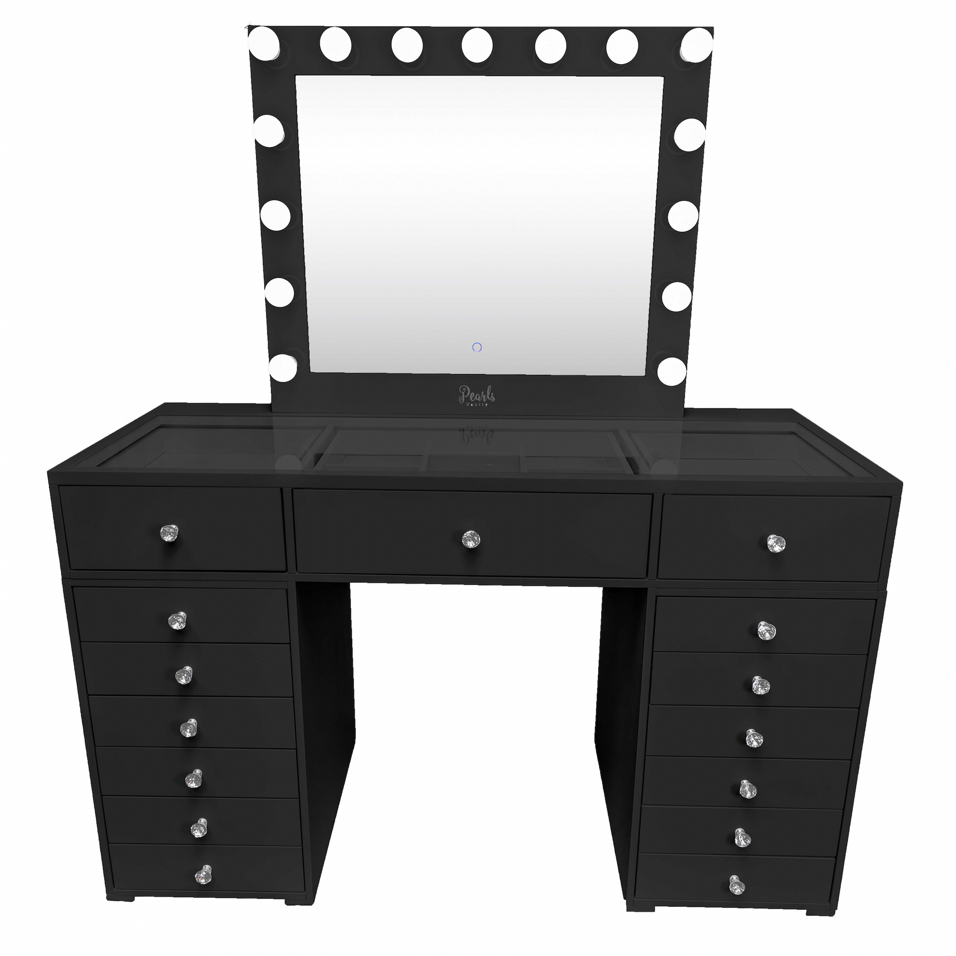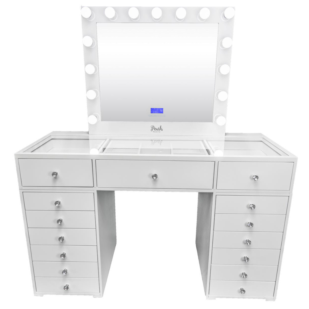 Experience a vanity made for both elegance and endurance. With a smooth, high-gloss finish & crystal knobs. Equipped with Bluetooth features and dimmable bulbs for lasting brilliance.