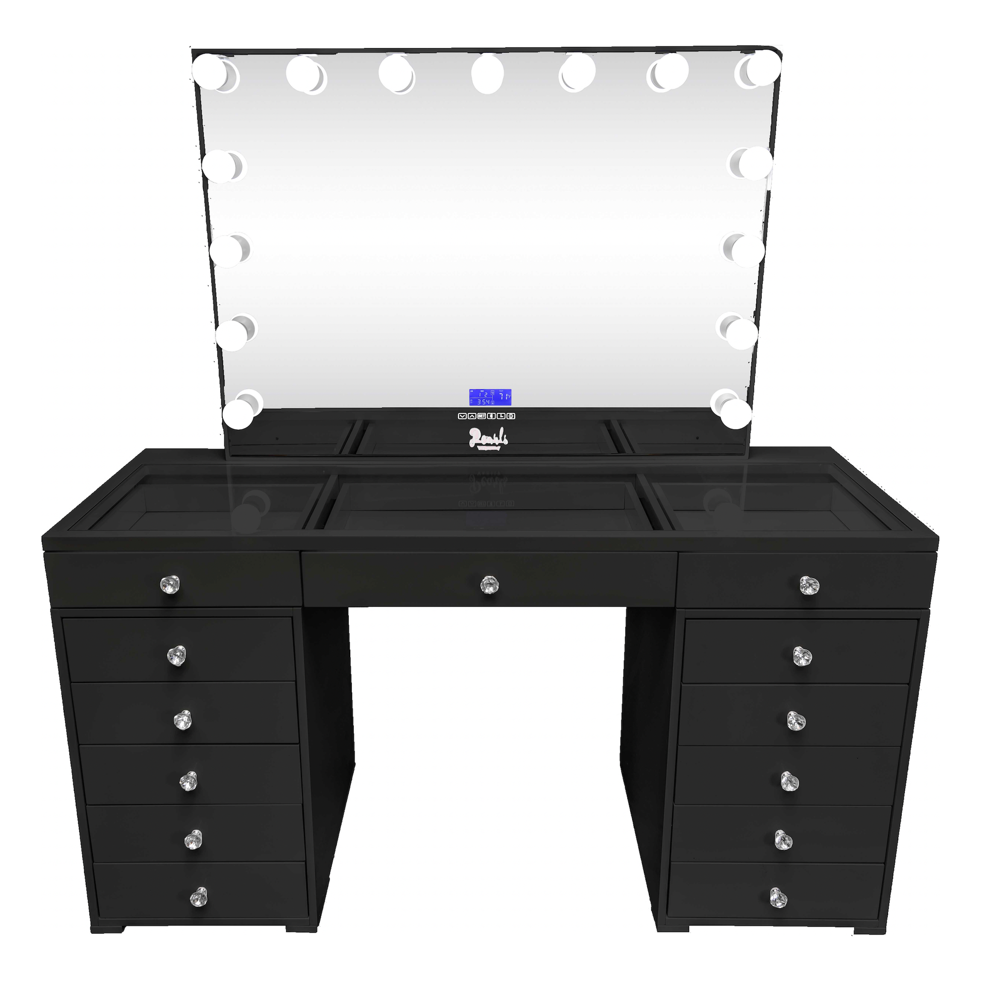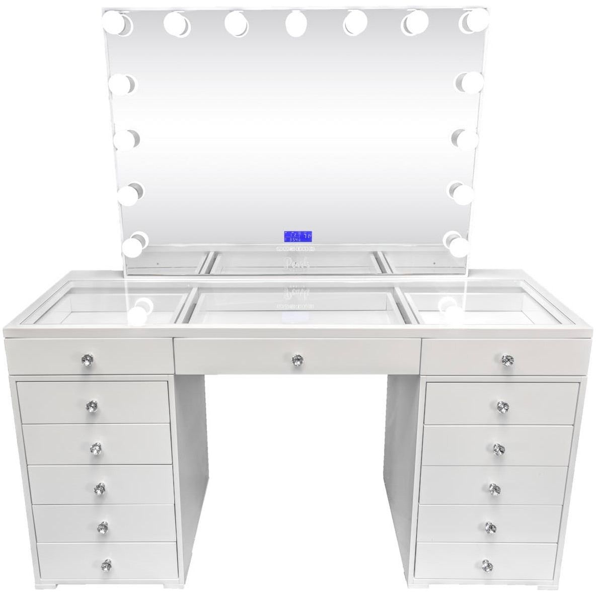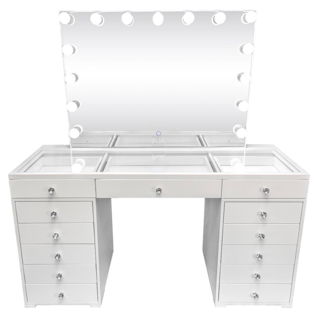 Experience a vanity made for both elegance and endurance. With a smooth, high-gloss finish & crystal knobs. Equipped with Bluetooth features and dimmable bulbs for lasting brilliance.