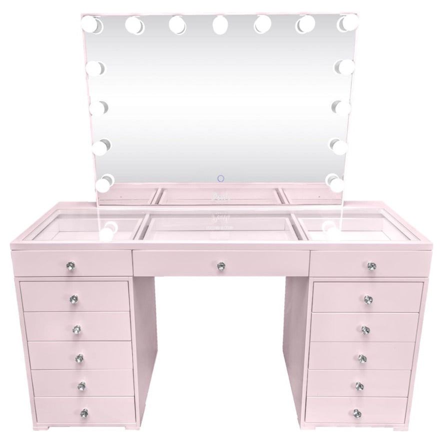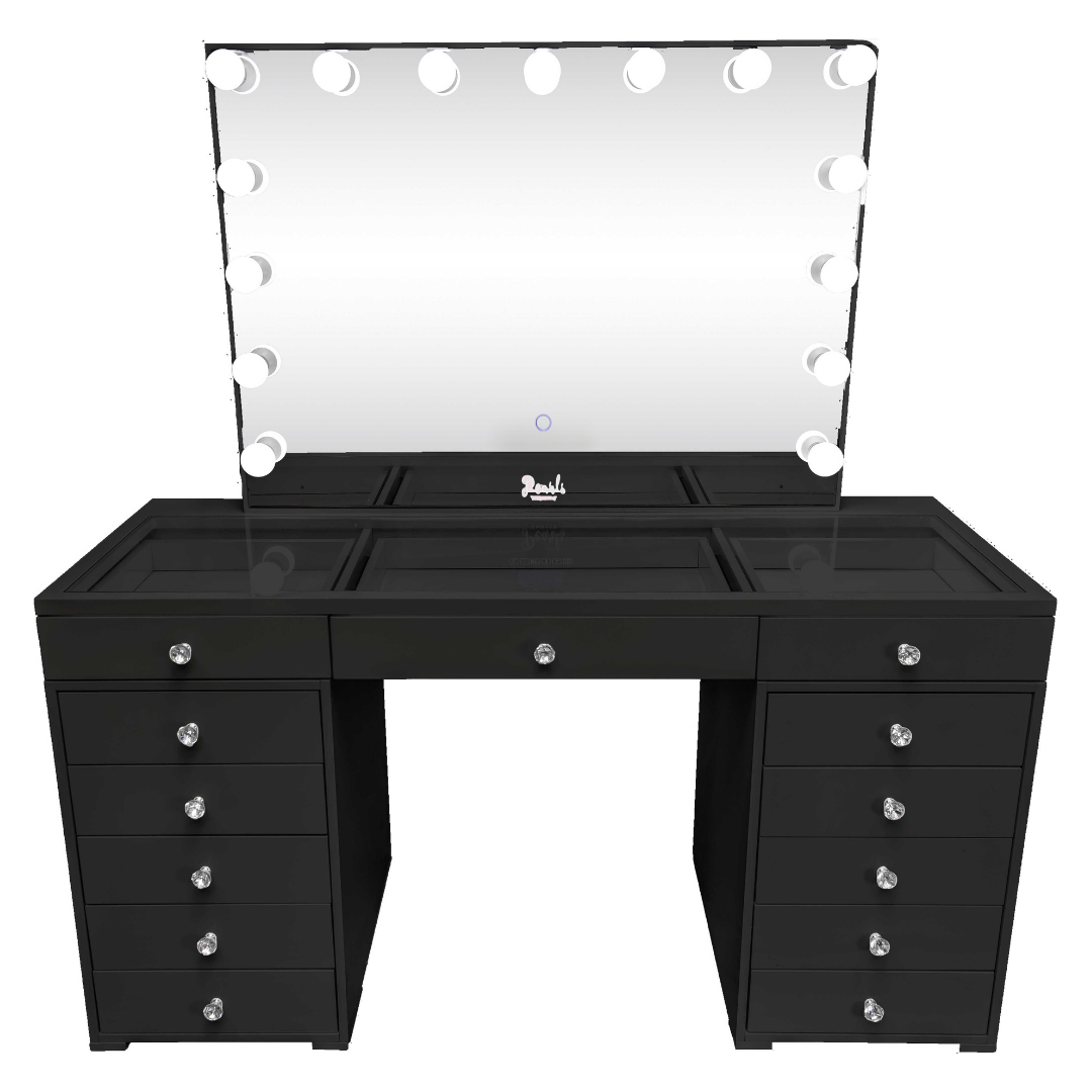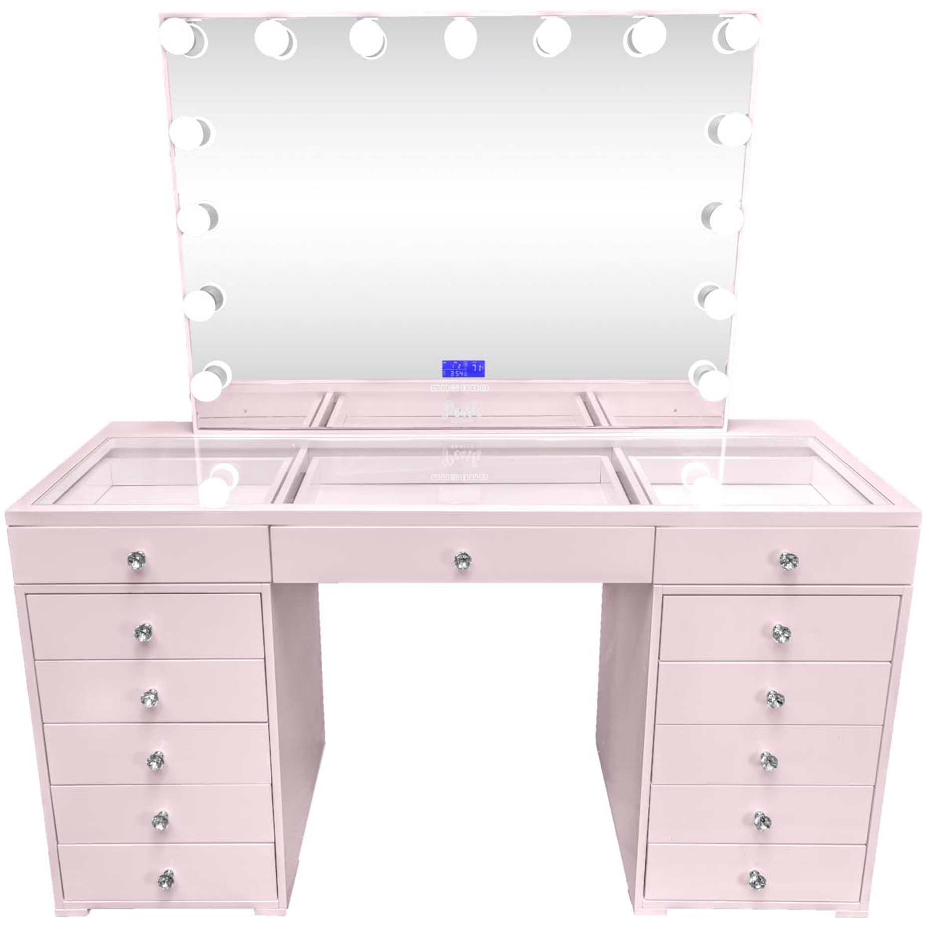 Experience a vanity made for both elegance and endurance. With a smooth, high-gloss finish & crystal knobs. Equipped with Bluetooth features and dimmable bulbs for lasting brilliance.